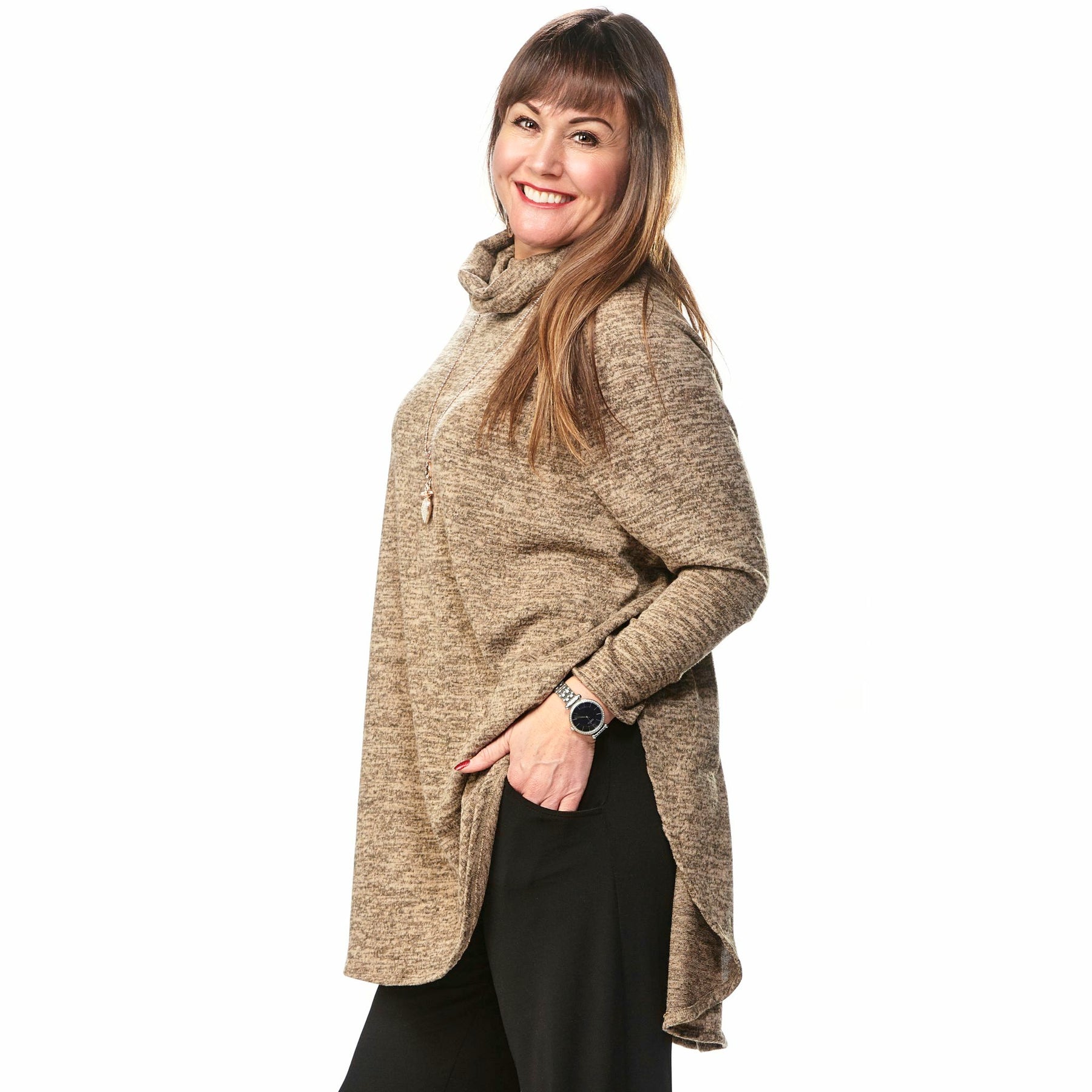 Elevate your wardrobe with our Full Sleeve Casual Knit Sweater, meticulously crafted in Canada to ensure premium quality. This top blends 80% polyester, 15% rayon, and 5% spandex, creating a luxuriously soft feel with just the right amount of stretch for comfort. The elegant cowl neck design adds a touch of sophistication, making it versatile for both casual outings and stylish evening events. Perfect for layering or wearing solo, this sweater is a must-have for those who value comfort without compromising on style.