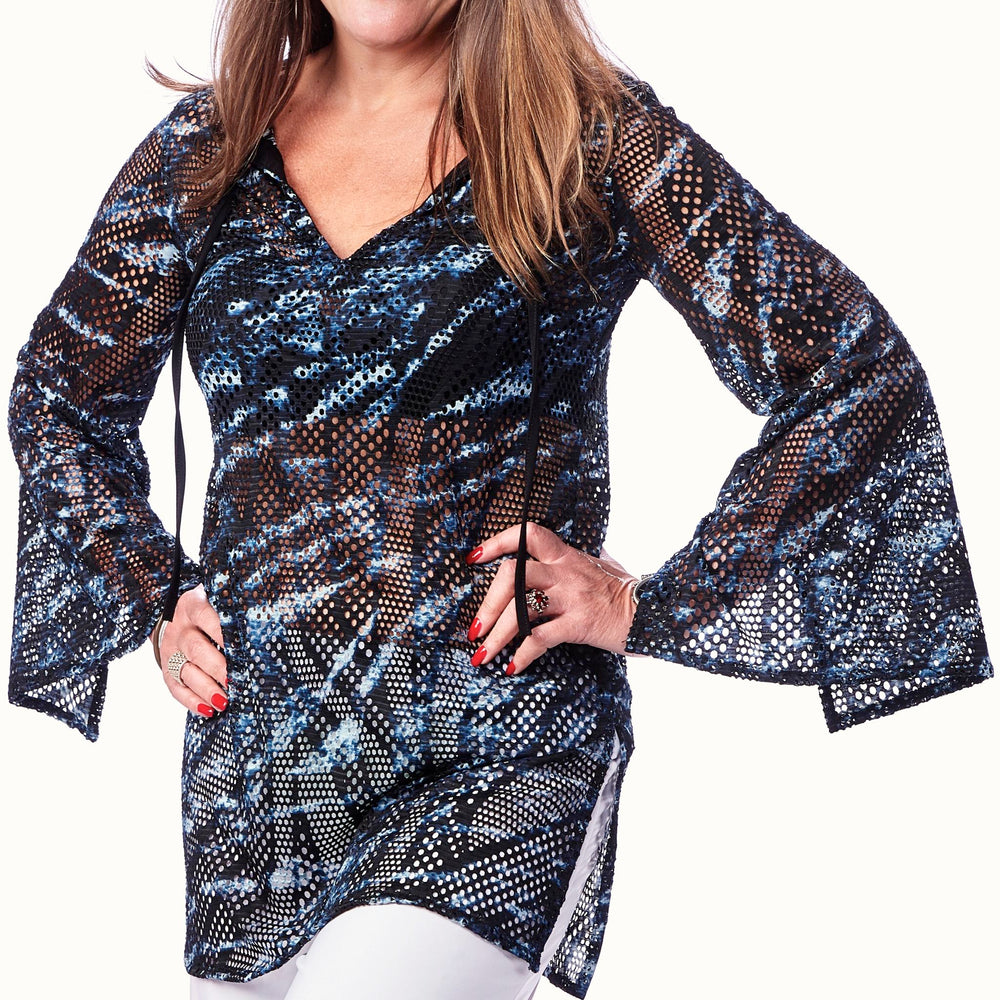 34 - Leaf Print - Blue/Green/Purple on Navy